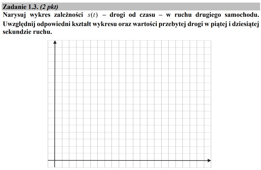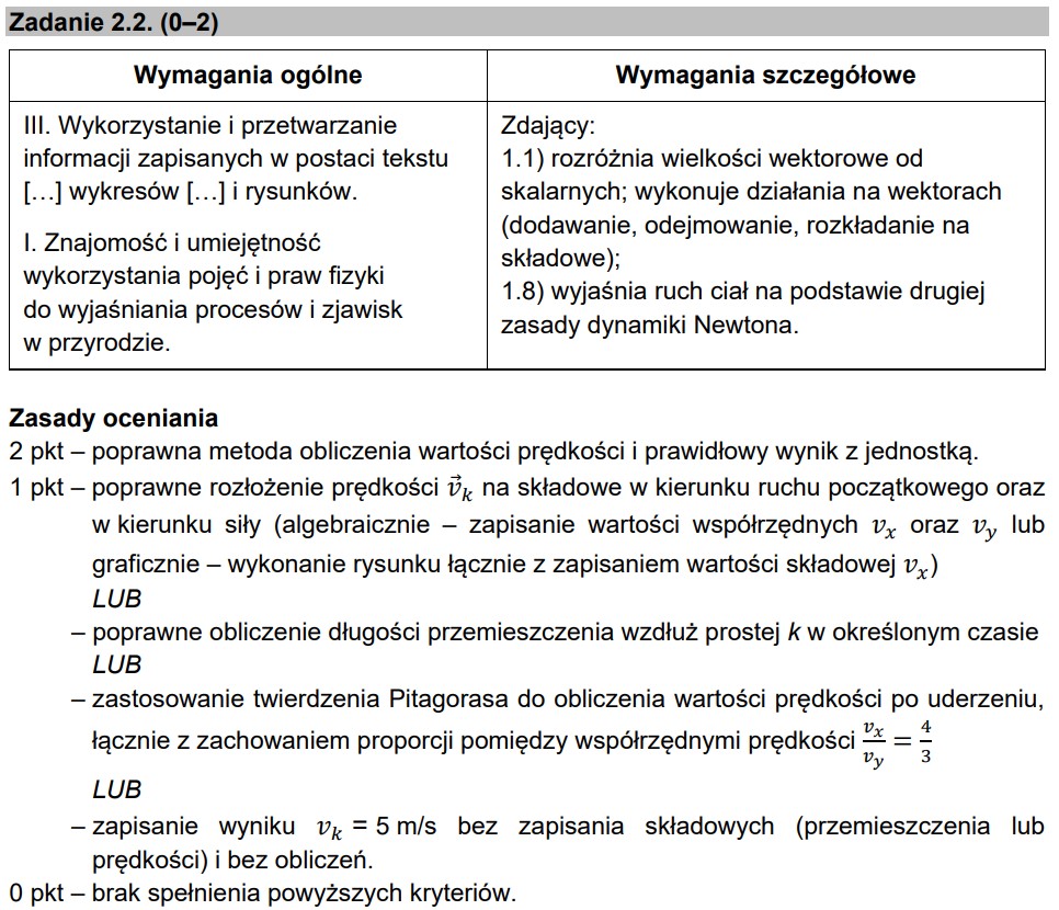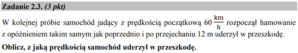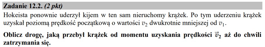 c. Oblicz prędkość, jaką uzyska to ciało na drodze 2 m. Przyjmij, że początkowo było nieruchome. Wynik zapisz z dokładnością do dwóch cyfr znaczących.