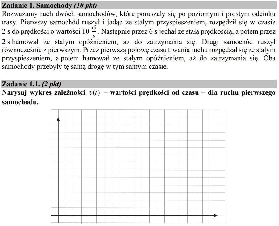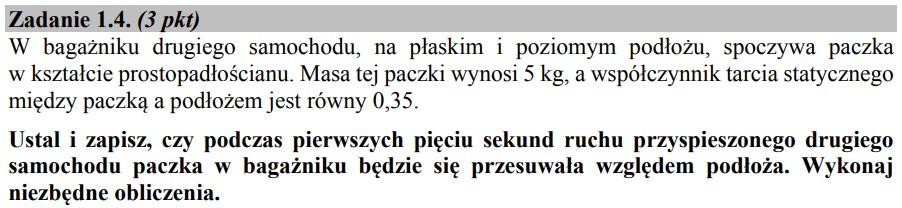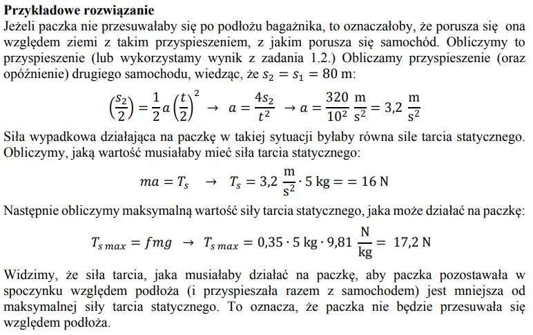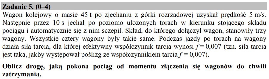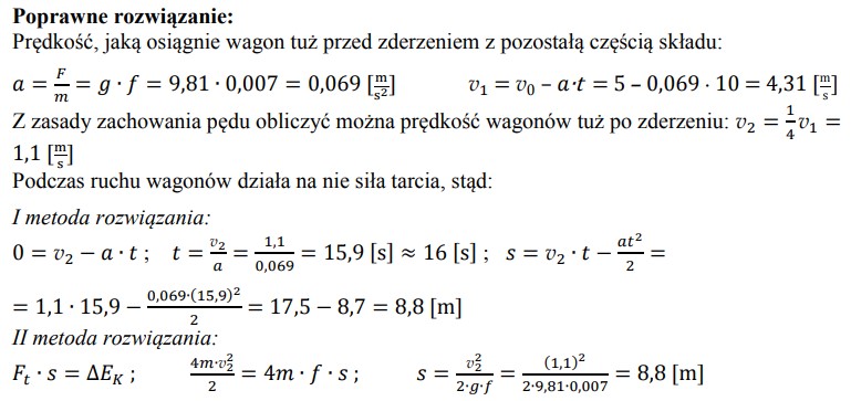 W rozwiązaniu przyjmij, że przyspieszenie ziemskie ma wartość 9.8 ms-2.