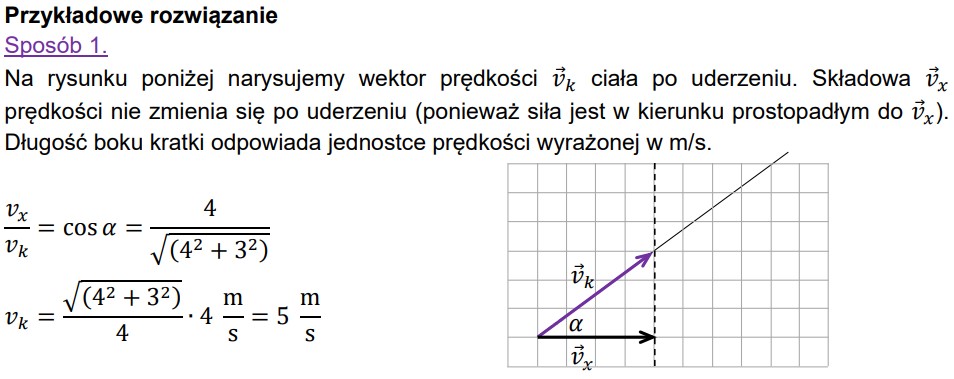 (LO) wykorzystuje zasadę zachowania pędu do obliczania prędkości ciał podczas zderzeń niesprężystych i zjawiska odrzutu;