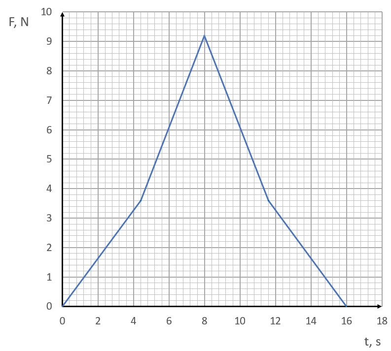 Wykres przedstawia zależność pędu pewnego ciała od czasu. Na podstawie danych odczytanych z tego wykresu, oblicz wartość siły wypadkowej działającej na opisywane ciało.