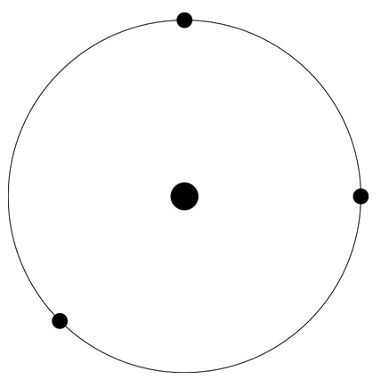 a) Dla każdego z trzech położeń satelity dorysuj wektory: prędkości chwilowej, przyspieszenia całkowitego oraz siły wypadkowej działającej na satelitę.