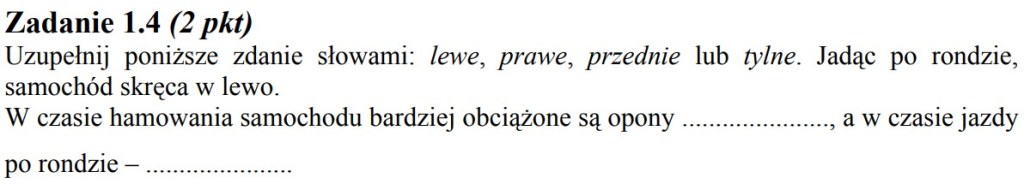 (LO) wyjaśnia różnice między opisem ruchu ciał w układach inercjalnych i nieinercjalnych, posługuje się siłami bezwładności do opisu ruchu w układzie nieinercjalnym;