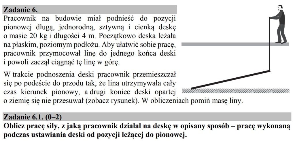 Czwarty tydzień powtórek poświęcimy na kolejne zagadnienia z zakresu mechaniki – działy „Praca, moc, energia” i „Ruch obrotowy”. Ze względu na pandemię i nauczanie online zakres zagadnień wymaganych na egzaminie maturalnym został w wielu elementach podstawy programowej ograniczony. Działem, który został chyba najbardziej „okrojony” jest właśnie „Ruch obrotowy”. Z zagadnień, które obowiązują na tegorocznym egzaminie, wyłączono cały zakres kinematyki i dynamiki ruchu obrotowego, pozostawiając w zasadzie tylko pojęcia środka masy, momentu siły i statykę bryły sztywnej.