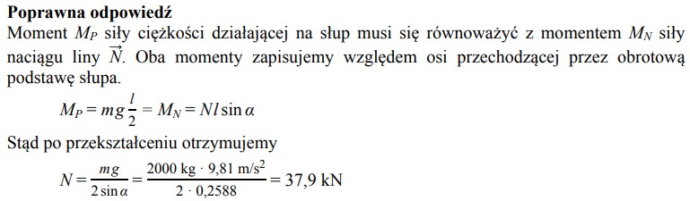 Z równań dotyczących ruchu obrotowego z karty wzorów pozostała tylko definicja momentu siły.