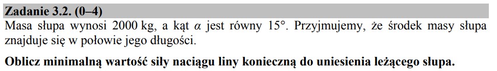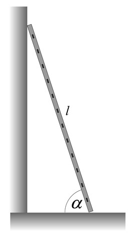 Drabina o masie m i długości L stoi oparta o pionową, idealnie gładką ścianę. Minimalny kąt, jaki drabina musi tworzyć z podłogą, aby nie upaść, wynosi 60o.