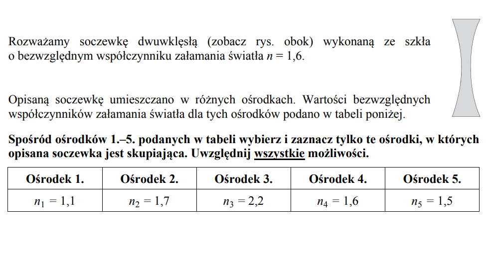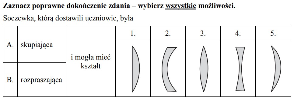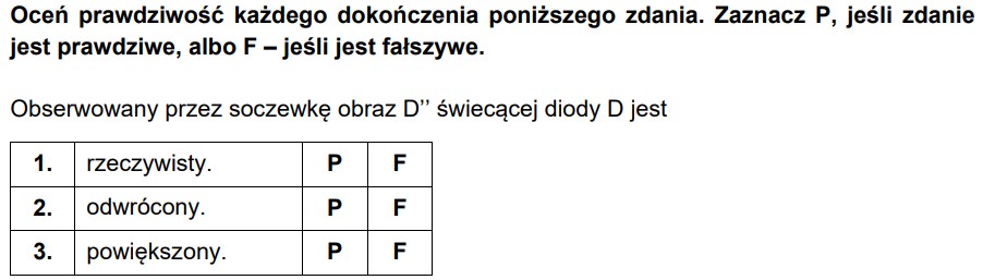 (LO) rysuje i wyjaśnia konstrukcje tworzenia obrazów rzeczywistych i pozornych otrzymywane za pomocą soczewek skupiających i rozpraszających;