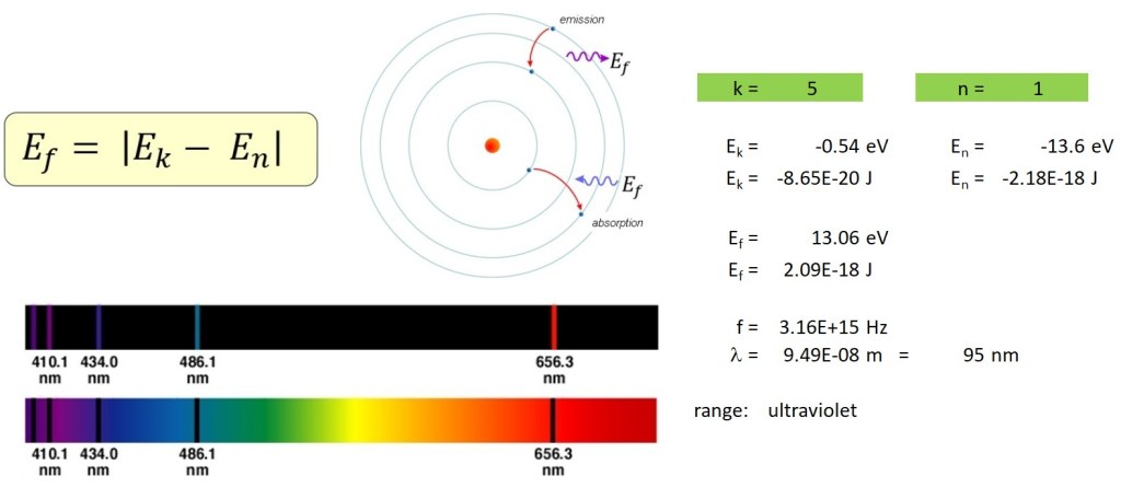 Arkusz ten przyda się zarówno w toku lekcji, gdy dyskutujemy z uczniami nad ideą kwantyzacji poziomów energetycznych, jak i ułatwi tworzenie zadań zlecanych uczniom. Również i tu, podobnie jak w poprzednim przypadku, po zmianie istotnych parametrów – wartości głównych liczb kwantowych poziomów energetycznych, pomiędzy którymi przeskakuje elektron, następuje automatyczne przeliczenie pozostałych wartości.