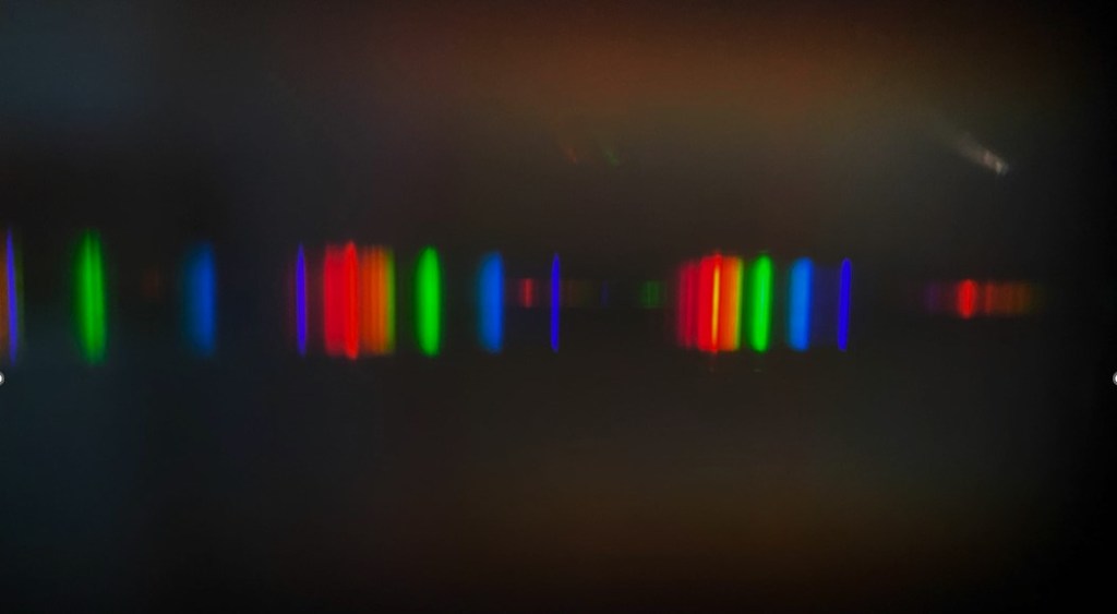 W przypadku zwykłej żarówki zobaczymy widmo ciągłe, czyli po prostu „tęczę”. Ciekawsze efekty daje rozszczepienie światła ze świetlówek kompaktowych lub tzw. jarzeniówek powszechnie używanych w oświetleniu klasopracowni szkolnych czy też np. sklepów. Uzyskamy w tym przypadku widmo liniowe, czyli tylko wybrane kolory, których zestaw zależny jest od substancji użytych w konstrukcji danego źródła światła.