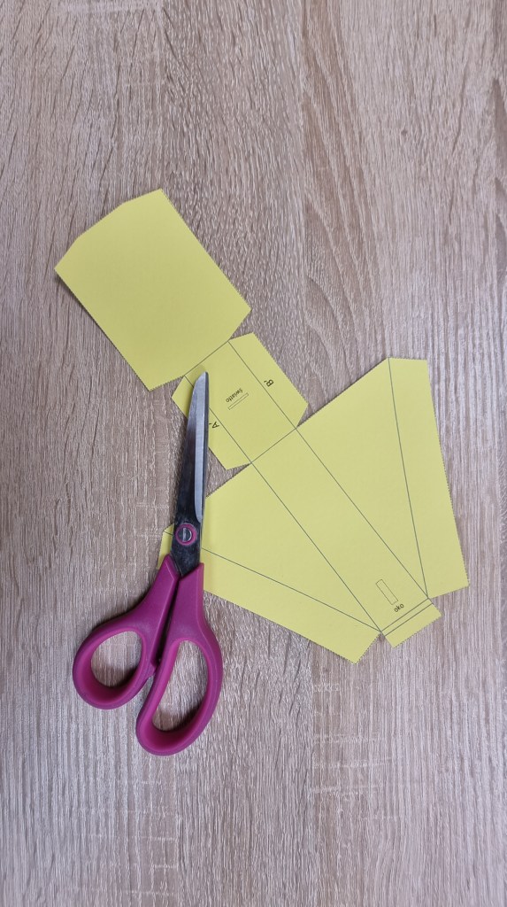 Teraz kolej na użycie nożyczek. Jak najstaranniej wycinamy wydrukowany kształt wzdłuż kropkowanych linii.